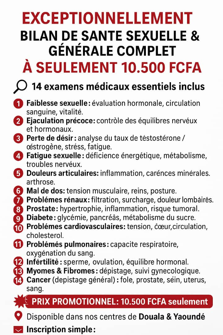Implanté à Yaoundé et Douala, le Centre de la Bonne Santé s'engage à offrir un service sérieux, accessible et orienté vers la satisfaction et la fidélité de sa clientèle.